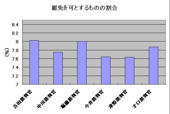 何も知らずに投票する人は、①×を1つもつけない、②全部×というのが一般的ですが、そうしたくない人は、③右端か左端に×をつけることが多い、という心理学の考察があります。その点で、古田裁判官と才口裁判官の得票が多いのは、有意な差とは見がたいところです。 古田裁判官の得票には、彼が立案に関わったいわゆる通信傍受法がらみの×票が影響しているかもしれません。